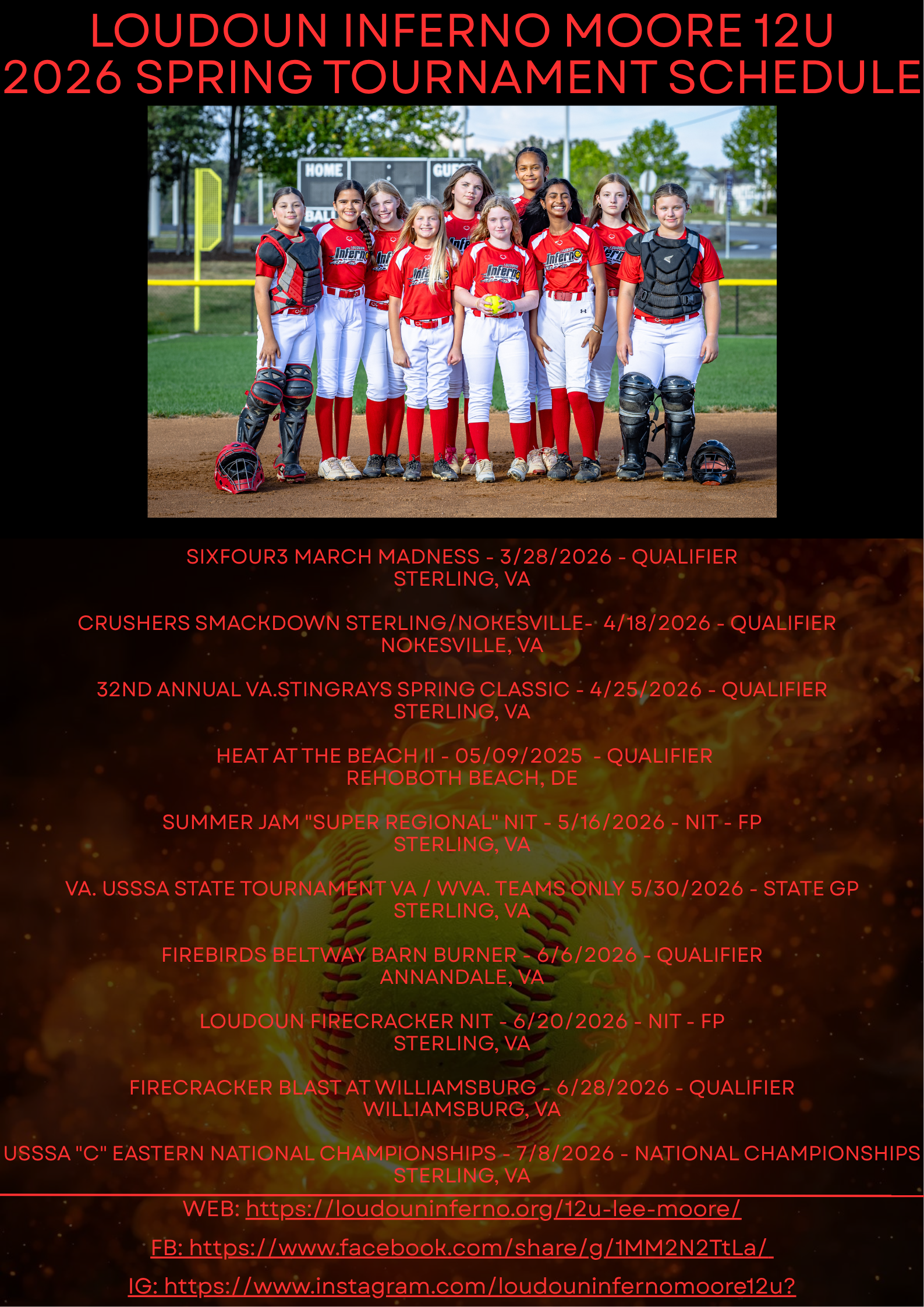 π₯ Inferno Moore 12U β 2026 Spring Tournament Schedule is Live! π₯